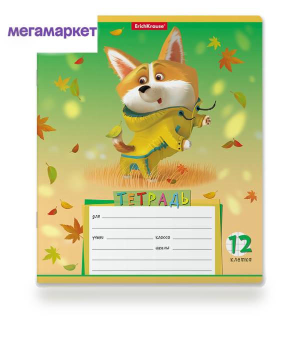 Тетрадь тонкая ErichKrause Корги 12 листов А5+ на скобе в клетку с полями в ассортименте продается в интернет-магазине МегаМаркет