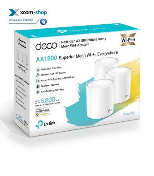 Точка доступа TP-LINK Deco X60(3-pack) AX3000 Whole Home Mesh Wi-Fi System, WiFI 6, 2402Mbps at 5G and 574Mbps at 2.4G, 2 Giga ports of each unit продается в интернет-магазине Xcom Shop