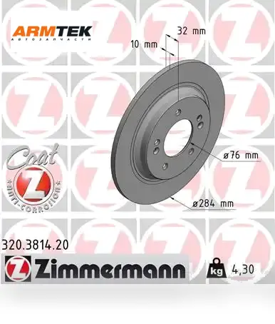 Тормозной диск ZIMMERMANN 320.3814.20 полный задний мост продается в интернет-магазине Армтек