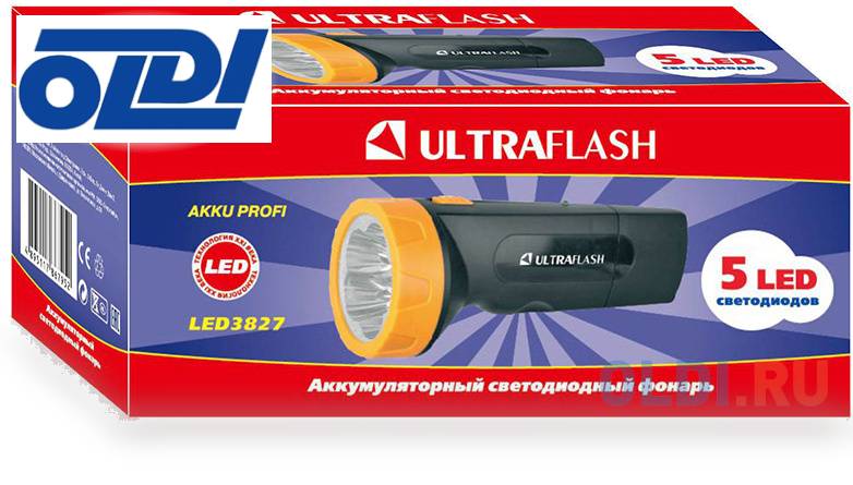 Ultraflash LED3827 (фонарь аккум 220В, черн /желт, 5 LED, SLA, пластик, коробка) продается в интернет-магазине Олди