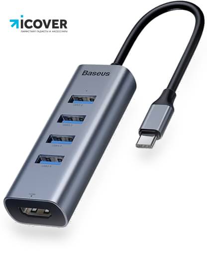 USB-концентратор Baseus Enjoyment Series USB-C to HDMI/4xUSB 3.0 CAHUB-N0G (Deep Grey) продается в интернет-магазине iCover