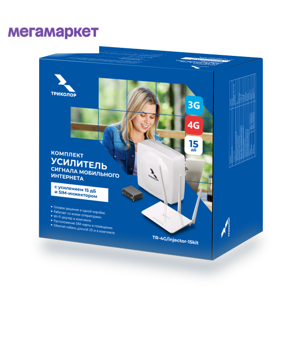 • Комплектуется внешней ненаправленной широкополосной антенной с усилением 6 дБ, внутренней компактной панельной антенной с усилением до 6 дБ и репитером стандартов 2G;3G;4G;LTE; GSM 900;3G 2100 4G/LTE 2600.