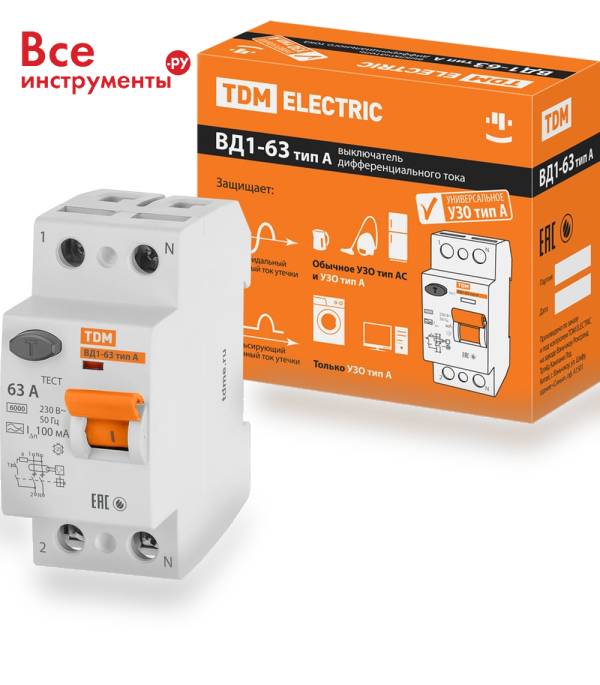 Узо TDM ВД1-63 2Р 63А 100мА тип А SQ0203-0081 продается в интернет-магазине ВсеИнструменты