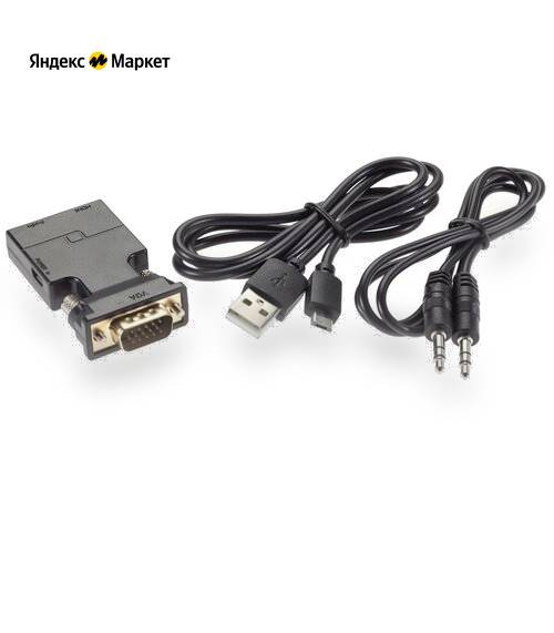 Тип кабеля: HDMI, VGA; Тип: Переходник; Форма кабеля: круглый; Прочие особенности: Переходник для вывода изображения со звуком с ноутбука или компьютера с выходом VGA на проектор или монитор с HDMI-входом Цвет: черный