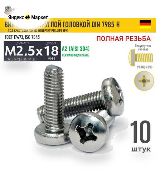 Винт п/кр M2,5х18 под крест нерж. А2 DIN 7985 H, 10 шт продается в интернет-магазине Яндекс Маркет