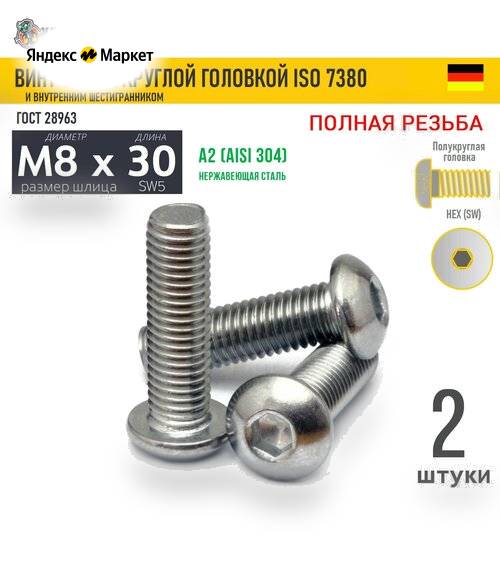 Винт п/кр M8х30 в/ш нерж. А2 ISO 7380, 2 шт продается в интернет-магазине Яндекс МаркетЭксперт: Юрий Л., специалист по онлайн-шопингуДата рецензии: 16 октября 2025 годаРекомендация к покупке положительная