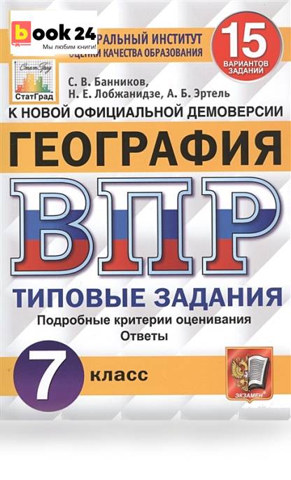 ВПР. География. 7 класс. 15 вариантов заданий. Типовые задания. Подробные критерии оценивания. Ответы продается в интернет-магазине Book24