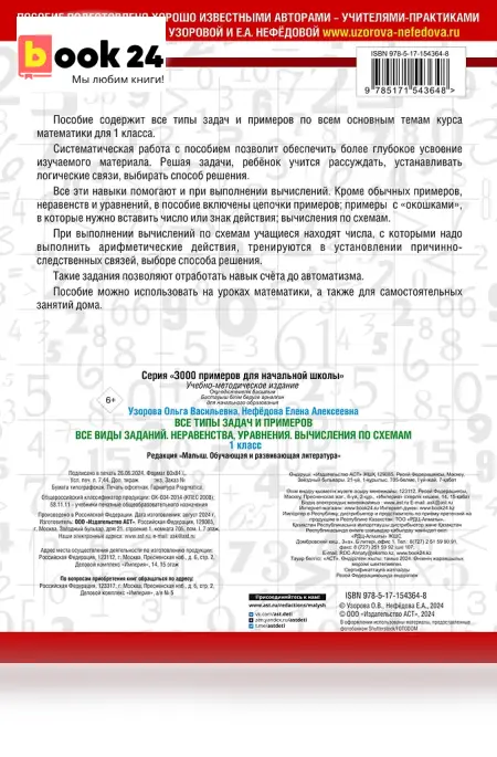 Все типы задач и примеров 1 класс. Все виды заданий. Неравенства, уравнения. Вычисления по схемам продается в интернет-магазине Book24