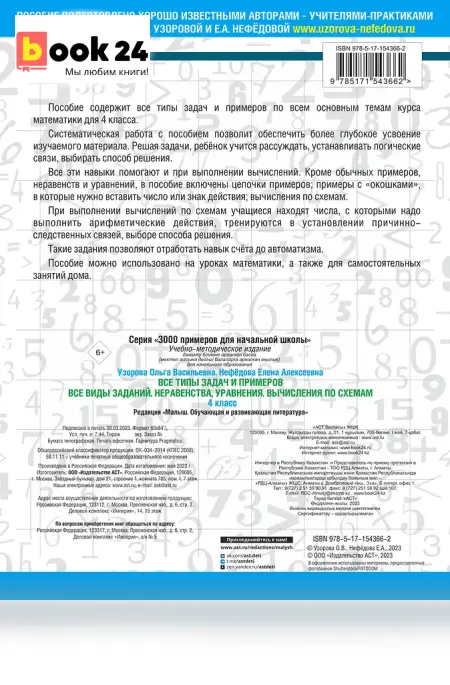 Все типы задач и примеров 4 класс. Все виды заданий. Неравенства, уравнения. Вычисления по схемам продается в интернет-магазине Book24
