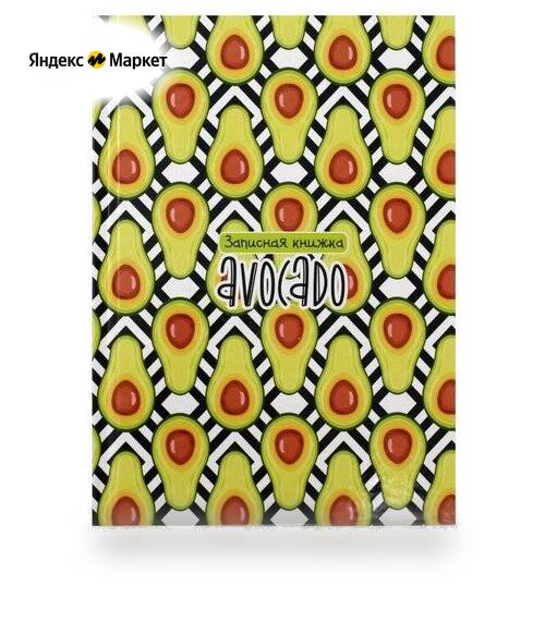 Записная книжка А5, 80 листов в клетку "Узор из авокадо", твёрдая обложка, глянцевая ламинация, блок офсет продается в интернет-магазине Яндекс Маркет
