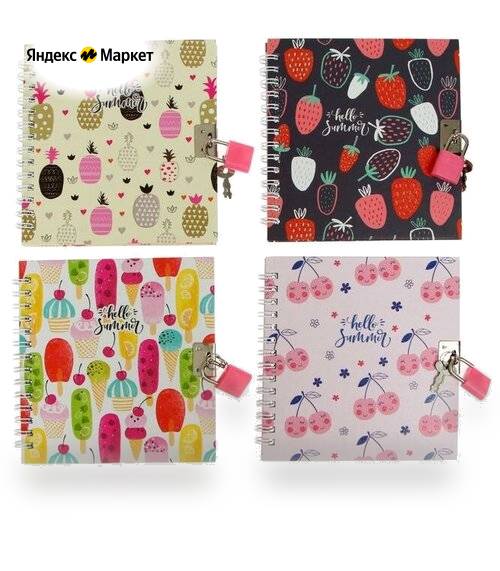Записная книжка подарочная формат А6+,45 листов, на замке, на гребне, линия, микс Ягоды/Фрукты 68973 продается в интернет-магазине Яндекс Маркет