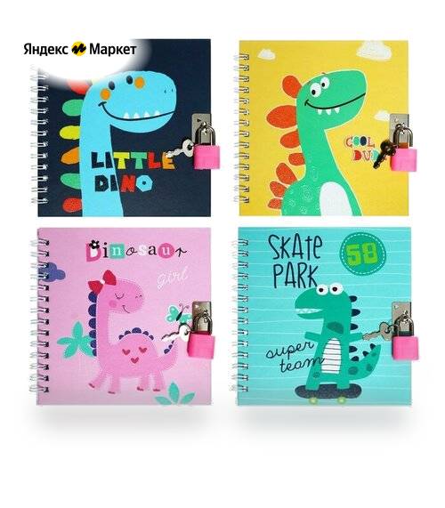 Записная книжка подарочная формат А6,45 листов, на замке, на гребне, линия, Дино микс продается в интернет-магазине Яндекс Маркет