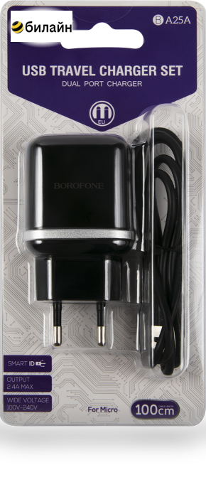 Зарядное устройство Borofone BA25A с кабелем microUSB Black продается в интернет-магазине билайн