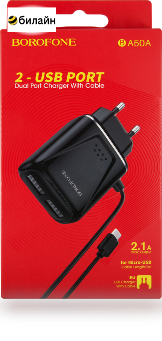 Зарядное устройство Borofone BA50A с кабелем microUSB Black продается в интернет-магазине билайн