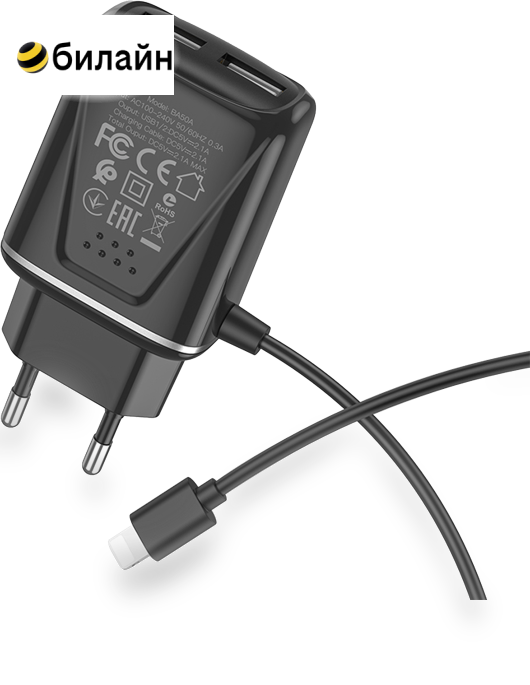 Зарядное устройство Borofone BA50A с кабелем Apple Lightning Black продается в интернет-магазине билайн