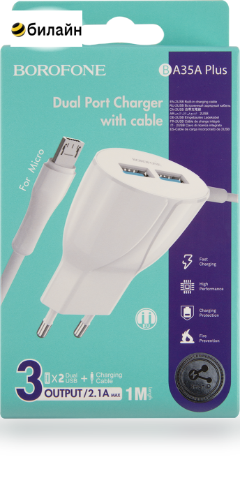 Зарядное устройство Borofone BA35A с кабелем microUSB White продается в интернет-магазине билайн