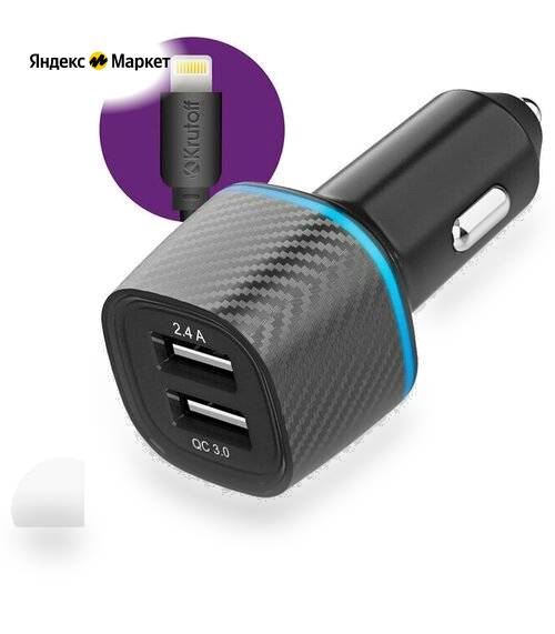Зарядное устройство Krutoff CCH-02L 2xUSB 2.4A + QC 3.0 30W + кабель Lightning Black 03725 продается в интернет-магазине Яндекс Маркет