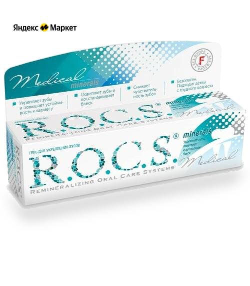 Перед нанесением геля тщательно почистите зубы с помощью зубной щeтки и зубной пасты R. O. C. S.® для взрослых или R. O. C. S.® для детей без фтора.